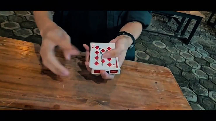 The finale of the ambitious card routine, where the spectator’s chosen card can penetrate out of the card box.