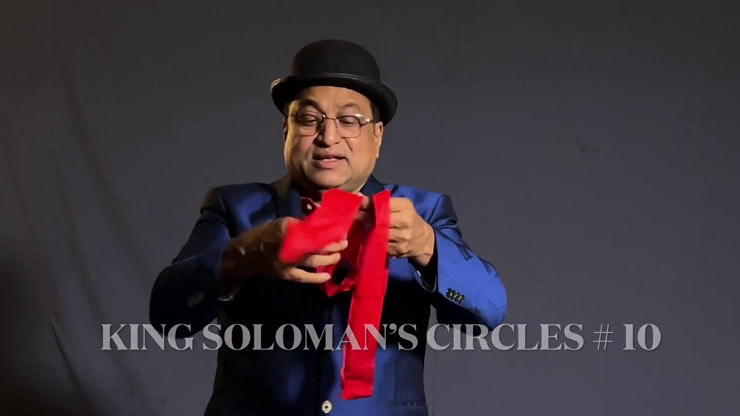 King Solomon’s Circles is a novel effect suitable for stage, parlor, and close-up shows. A fabric band is torn to form two separate bands. When one of these bands is torn again, it is found to be two bands linked together. When the other band is torn, it transforms into one large circle.
