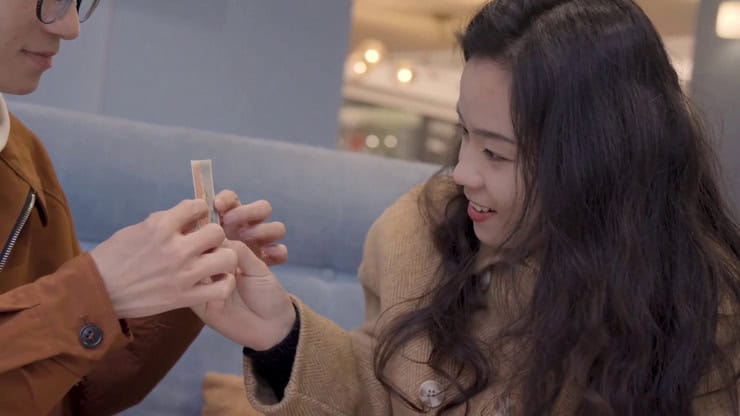 Phase 2: Both cards are torn in half, symbolizing the sharing of each other’s time.