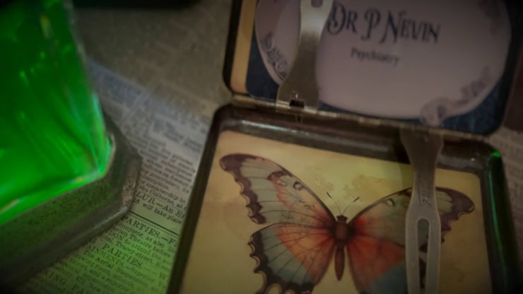 The Papilio Experiment includes the presentation box, vintage style cigarette case, Dr Nevin business card, packet of Victorian images, and prediction card, together with video instructions and routine from Liam Montier!